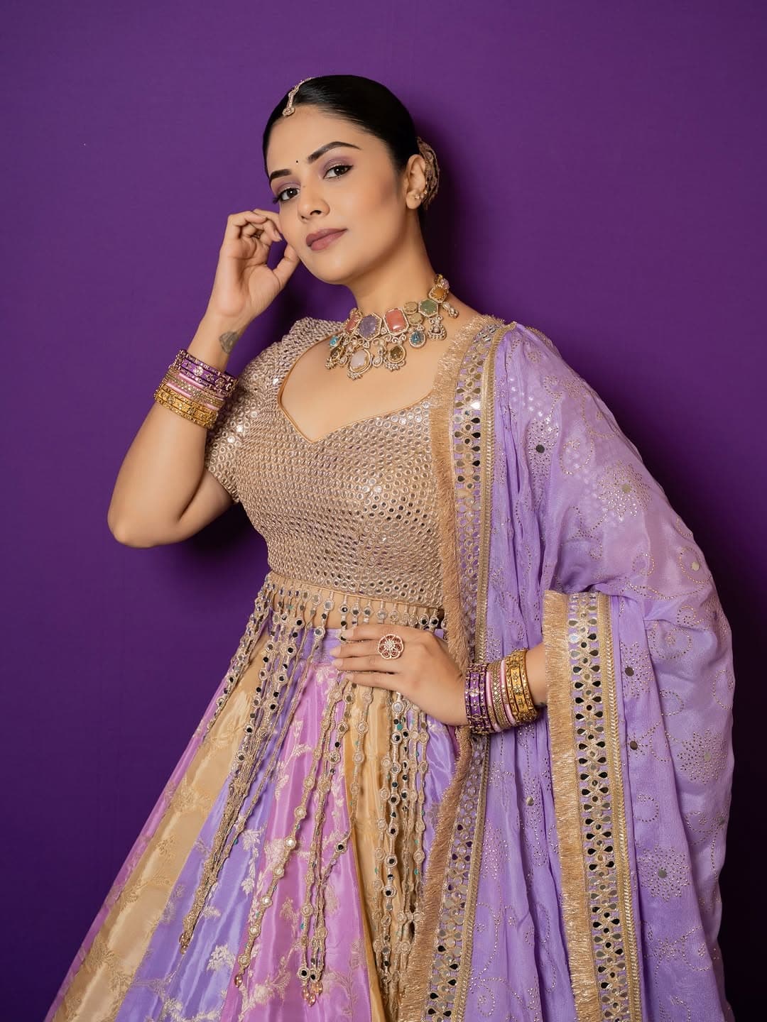 Radiating grace and charm, Sreemukhi dazzled fans with her stunning traditional ensemble, sharing a series of elegant pictures on Instagram. Her vibrant look and classy styling have quickly captured attention, leaving fans in awe on social media.